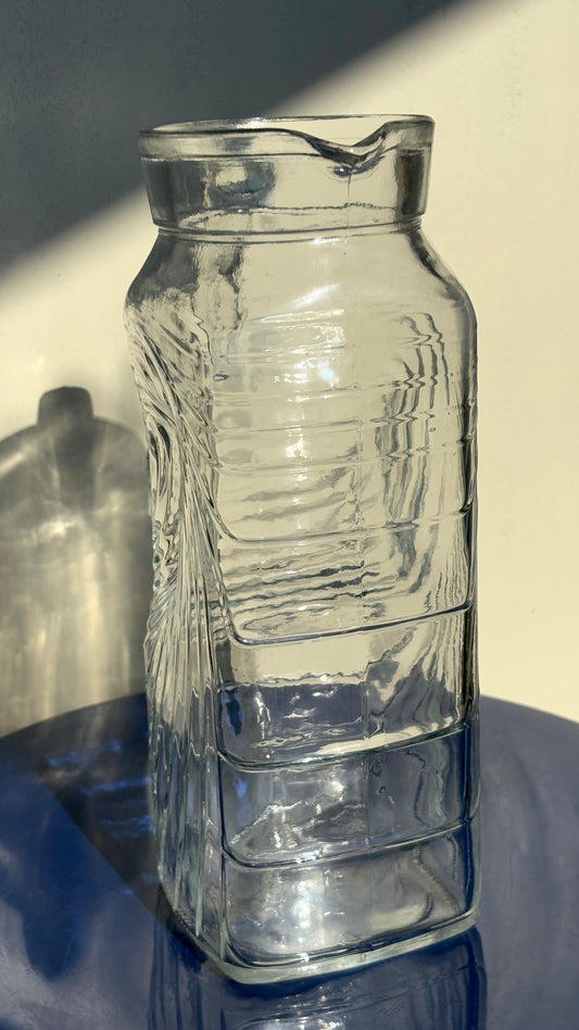 CLEAR GLASS WAVY LINED PITCHER